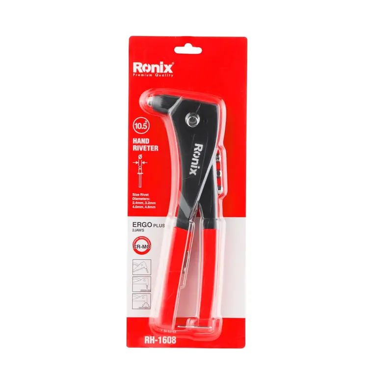 انبر پرچ رونیکس مدل RH-1608 با کیفیت ساخت بالا و 12 ماه گارانتی شرکت رونیکس, انتخابی مطمئن و بادوام برای کارهای صنعتی سبک, تعمیرات خودرو, فلزکاری و مونتاژ است.